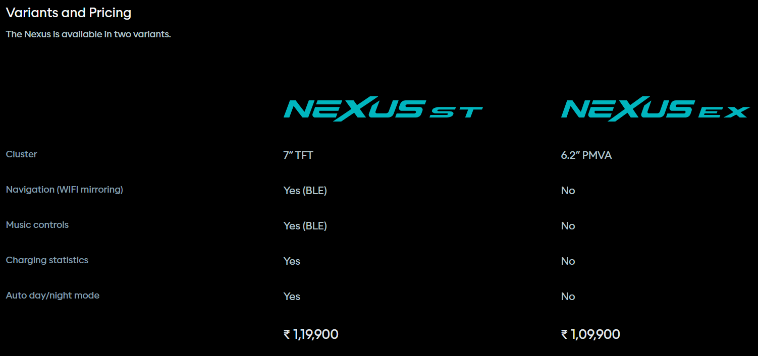 Nexus EX Specifications & Features